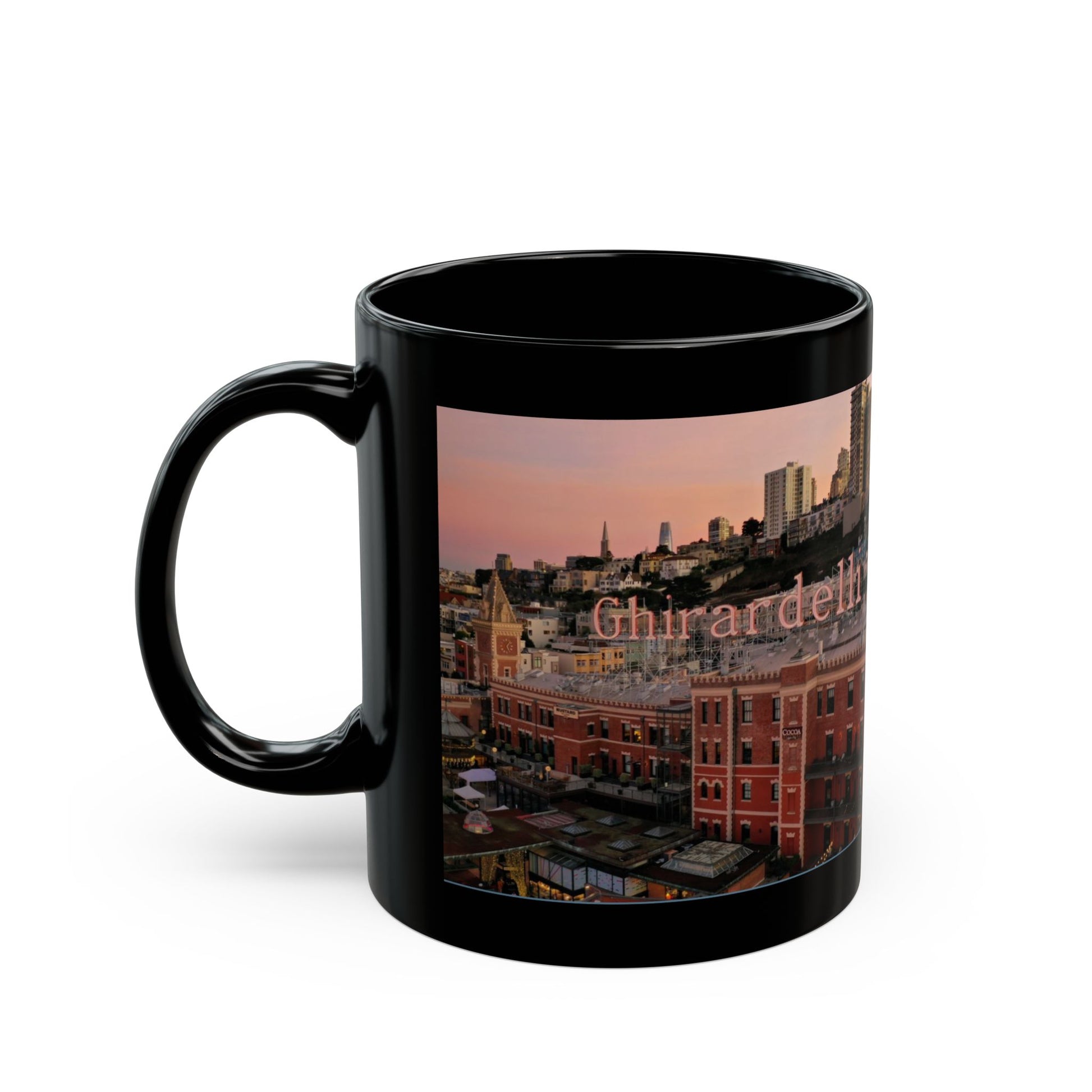 This San Francisco Ghirardelli Square-themed black mug comes in 11oz and 15oz sizes. Enjoy your morning coffee or tea while reminiscing about the iconic landmark. Perfect for those who love San Francisco or for those who enjoy collecting unique mugs. Ideal for gift-giving during birthdays, holidays, or special occasions.