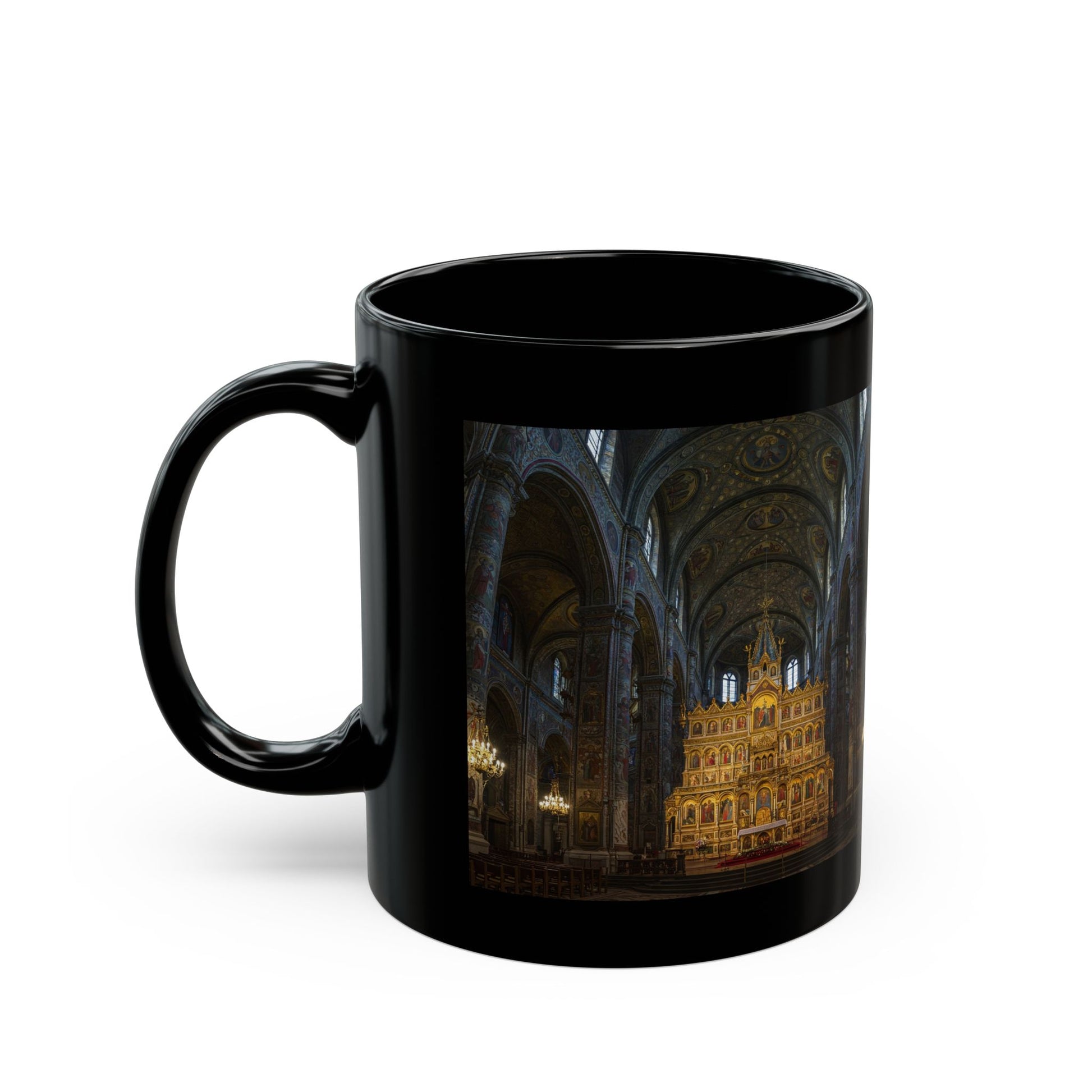 St Basils Cathedral & Interior Black Mug (11oz, 15oz) - Moscow Landmark of Russian Architecture